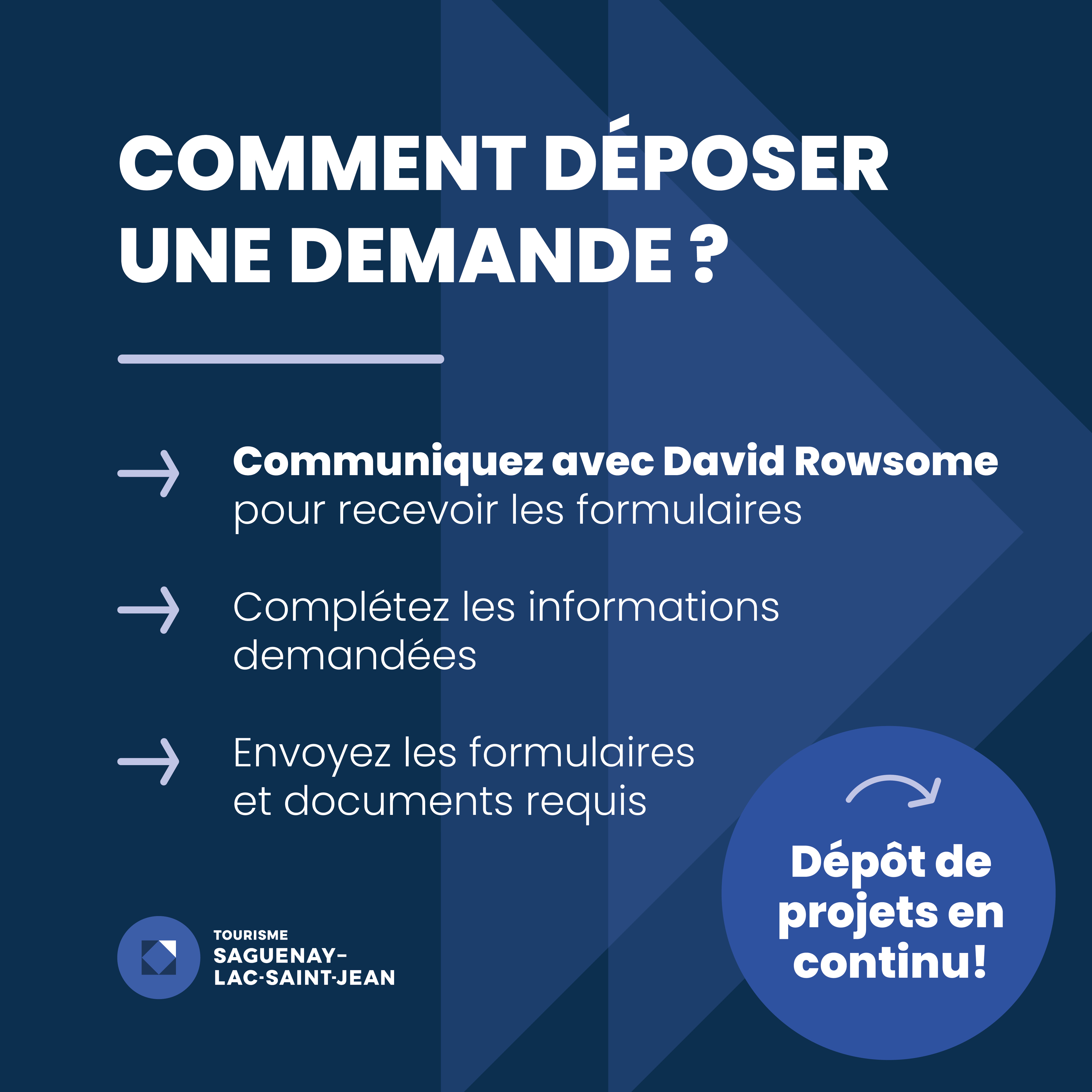 Tourisme Saguenay–Lac-Saint-Jean s’engage à être un partenaire actif, en vous offrant un encadrement personnalisé et un accompagnement stratégique à chaque étape de votre dépôt de projet.